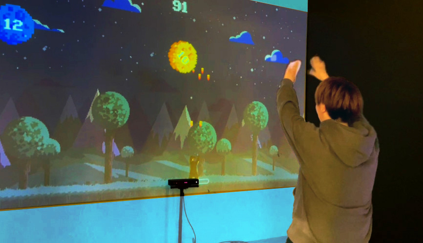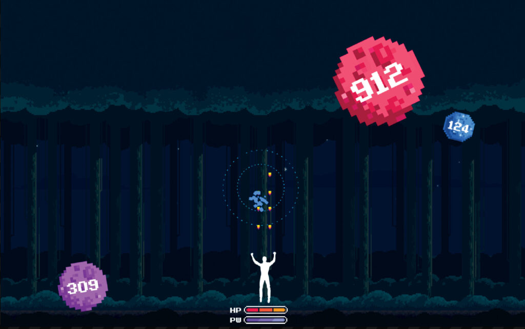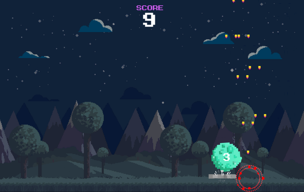 跳ねる惑星をよけながらミサイルを撃って攻撃!